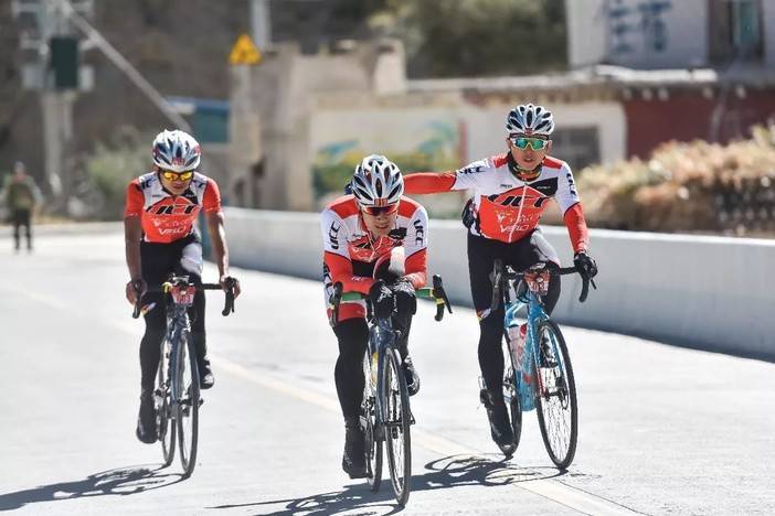 经过通麦大桥,比赛开始进入高原爬坡,哪怕大幅度领先第二集团,杨龙深知高原爬坡并不是自己的强项,但他始终没有停止自己奋力前行的脚步。终于在175公里处,杨龙被吐尔松江迅雷不及掩耳般地追上了!面对冲刺能力极强的吐尔松江,此时的杨龙已经感觉无力回天。