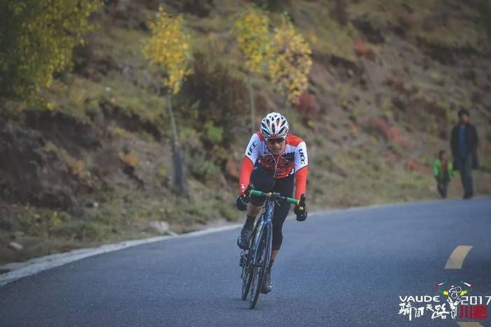 这是来自KUNG队的新疆选手吐尔松江,霸气、狂野的青春面孔让2017年VAUDE骑闯天路川藏赛从第一天开始的成绩就超越想象。而直到第八比赛日,当大家看到他穿着橙色领骑衫已经习以为常的时候,当大家对前两届的骑闯天路老将已经有些淡忘的时候,UCC车队的杨龙说:“别人干也是干,我干也是干,那我就赌一把!”。