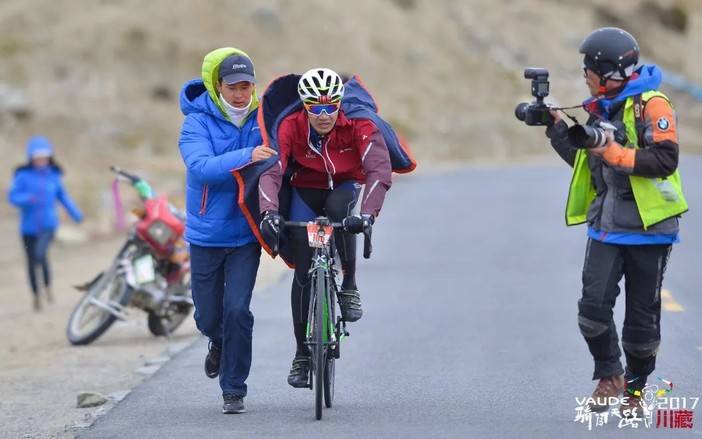 比赛来到了大约最后5公里,体力几乎透支的杨龙被后方的扎顿追上了,但杨龙十分感谢来自西藏的扎顿:“感谢他在我最困难的时候一直给我领骑带着我。”