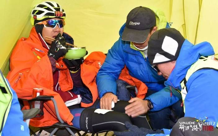 到达补给点后,李祥不断地给小龙做按摩和放松,并耐心地给小龙鼓劲:“没关系的,可以追上,加油,你一定可以完赛不被关门,你可以的。”可以说,梁小龙的发挥决定整个欧西尼时光之队的排名,如此的重担压在一个年仅17岁的年轻小伙子来说或许显得有一些残酷,但无论结果如何,我们看到欧西尼时光车队的团队精神和凝聚力。