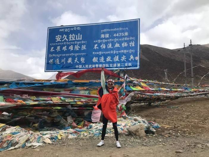 TC093庄景柏看到很多选手在CP点选择放弃比赛,大喊,你们不骑下去,一定会后悔的!来到安久拉山顶的庄景柏丝毫没有被高反影响,他还表示海拔越高自己状态越好。五年前他来到这里,坐车上来的,所以没脸拍照。今天终于自己骑上来了,他必须要光荣的拍一张照片!