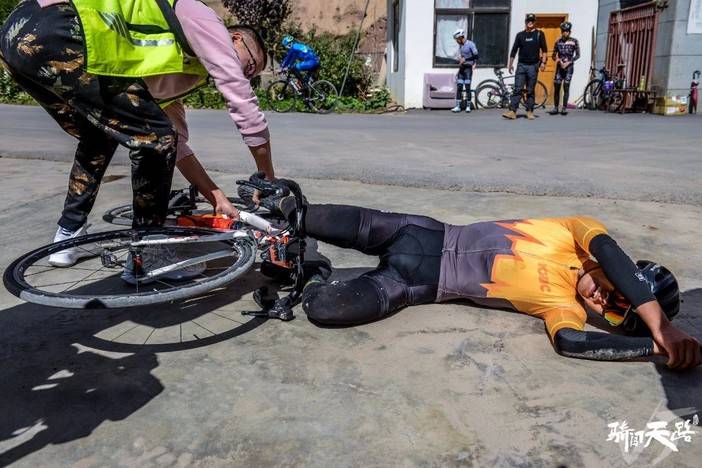 通过终点之后的朱培超筋疲力尽,摔倒在地。这今天的比赛中,他榨干了自己的所有体能。