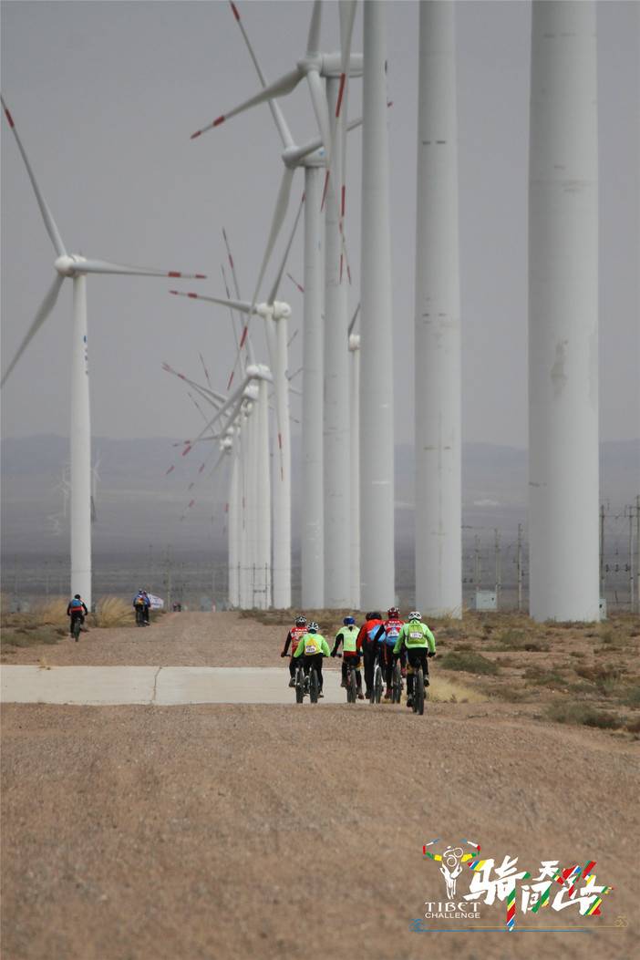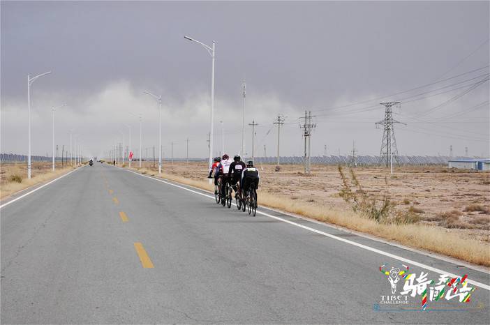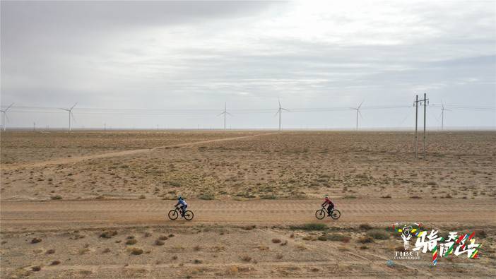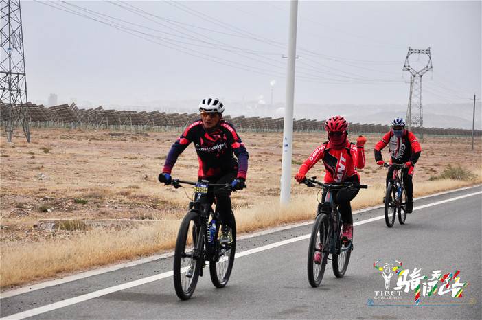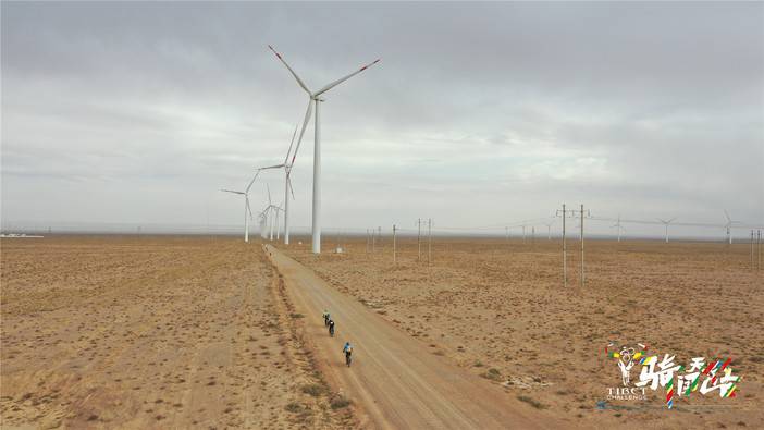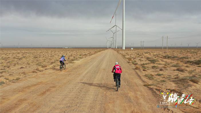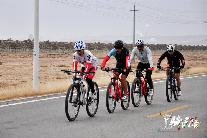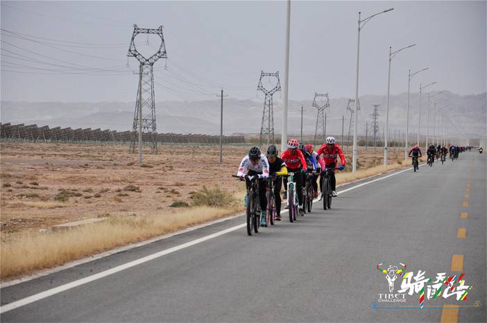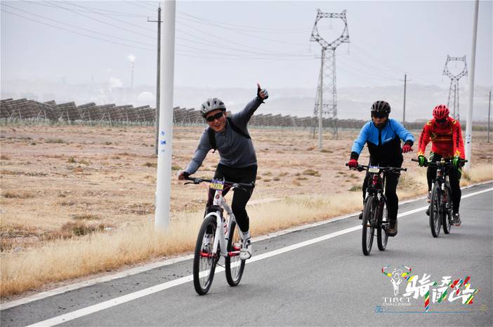 赛道经过光伏电厂。说到“光伏发电”这个名词,很多居住在沿海城市或者南方的人们可能是初次耳闻,新鲜的。选手们在一次次踩踏中骑行,经过两侧一片又一片金属质感的整整齐齐码放的光伏发电板。它们安安静静地将丰富的太阳能资源转化为清洁的电能,送到千家万户。