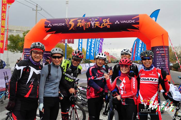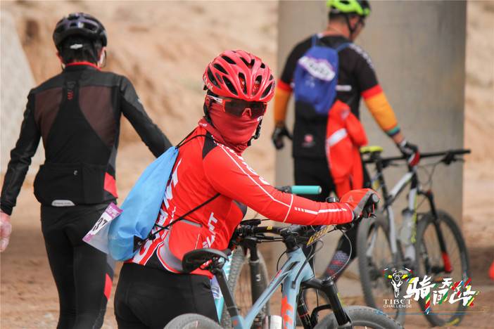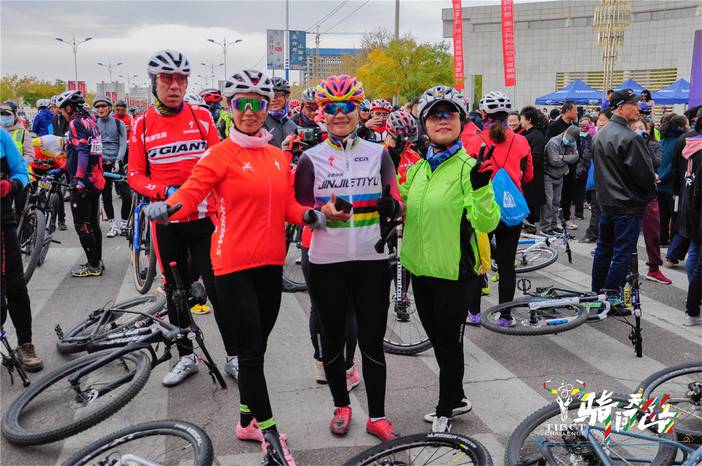 在活动背景板和拱门前留下靓丽的身姿是大多数闯爷闯妹来到主会场的第一选择。即使难以抑制骑闯挑战的兴奋,面对这一场冷秋自行车赛事,选手们也准备妥当,长袖的骑行服、或围脖或半遮脸的头巾、全指或半指的手套、厚实的骑行裤,甚至是专业的骑行背包,无不透露着选手们的认真与用心。