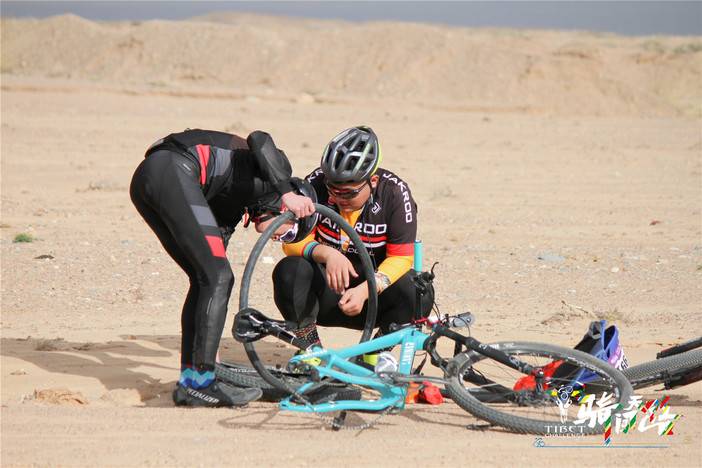 提起戈壁河滩,你的印象是否也停留在语文课本里面的“千嶂里,长烟落日孤城闭”、“大漠孤烟直,长河落日圆”等诗词中呢?而在这里,你可以最直观感受到最真实的戈壁河滩景观。它可以是手捧的一抔土、是脚下细腻的黄沙,可以是沾在不断滚动的车轮的纹理上一颗又一颗数不清的沙粒,也可以是风吹进眼里、鼻子里、嘴里的细沙。它也可以是远处的山丘,是零星几簇顽强生长的野草,是世世代代在这片黄沙上生活繁衍的骆驼。这场大漠骑闯让每位选手都身临其境,最真切地体验、接触戈壁的无穷魅力。