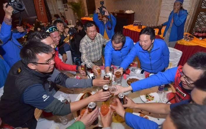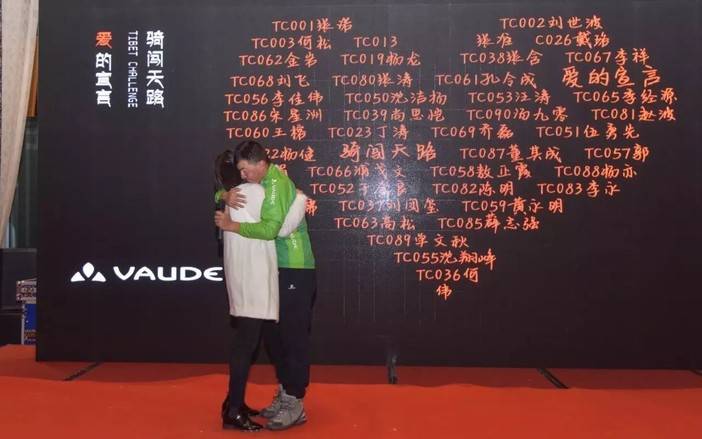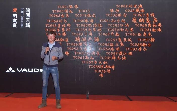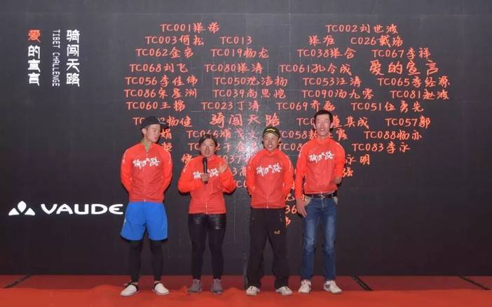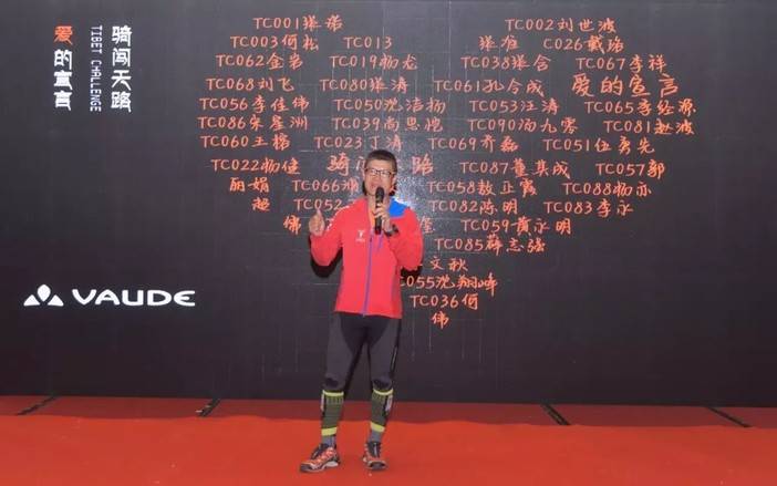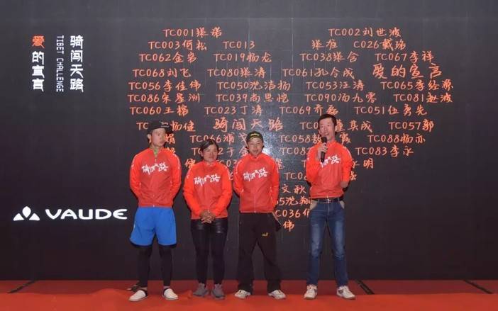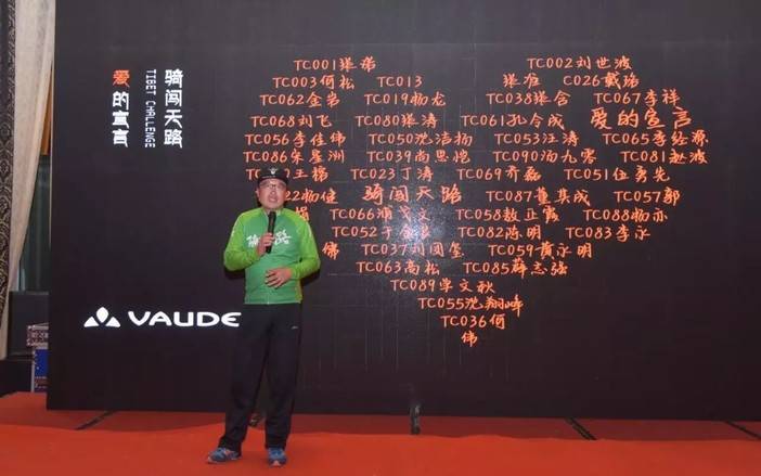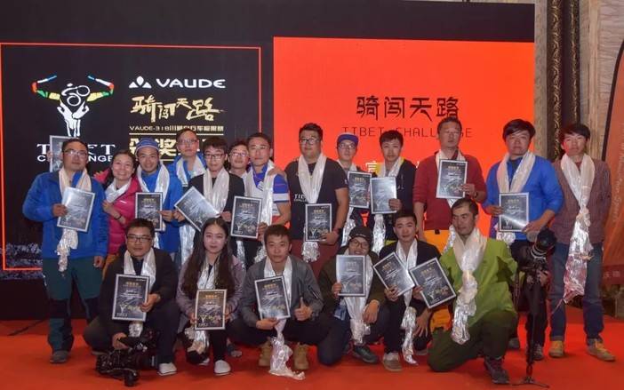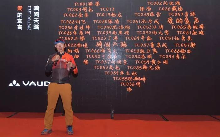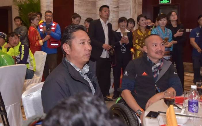 西藏自治区体育局副局长尼玛次仁先生和VAUDE中国总经理钟承湛先生一同欣赏骑闯天路纪录片。