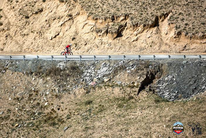 这一日的比赛开始后即进入爬坡,海拔连续上升约1000米,随着爬坡的进行和海拔的上升,风景也变得和第一赛段截然不同。从开阔的荒漠变为高耸的山体和沟壑,这一段路整体较窄,219国道在山间蜿蜒。由于新藏线也是一条进藏的重要补给线,因此一路上车辆较多,虽然道路整体情况较好,但部分被压烂的柏油路加上极度干燥的天气,仍然不时在山间和路上掀起巨大的灰尘。