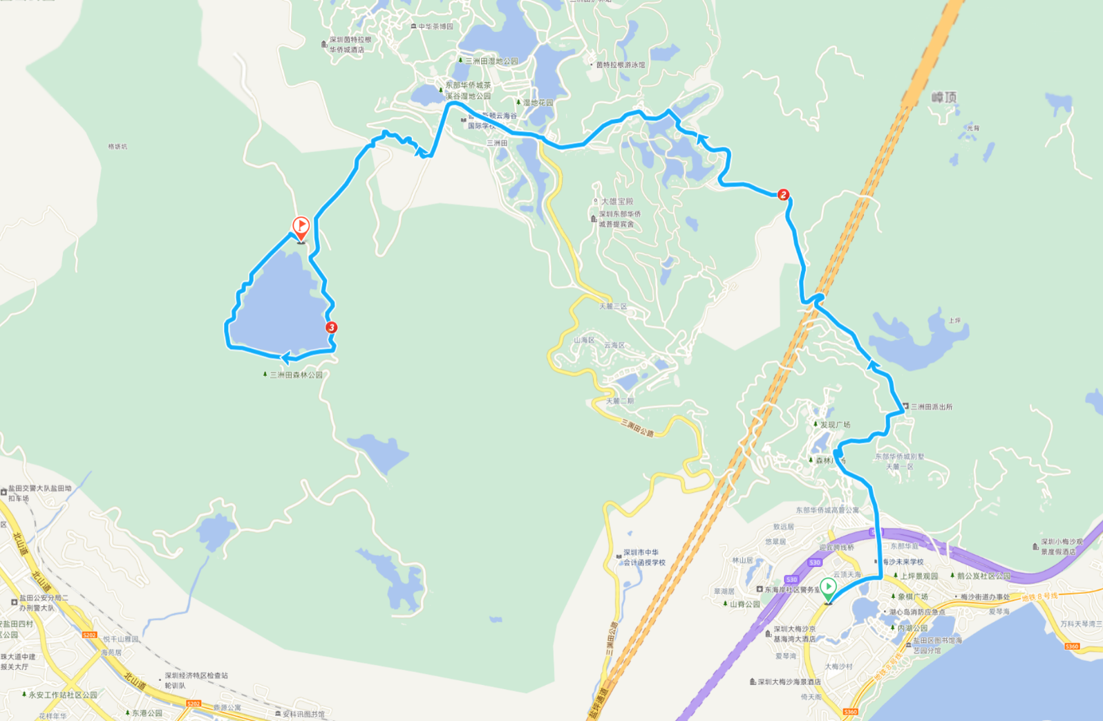 (1) 活动路线:盐田体育中心-环梅路-闲云路-巨石岩画广场-三洲田派出所-高尔夫球场-景观路-盐三路大转盘(直行)-小三洲田门岗-醉樱亭-大坝(环湖1圈)-终点(抽水蓄能水库上水库大坝)约13KM;关门时间1小时30分钟。