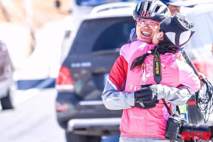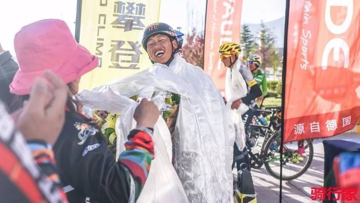 终点,鲜花,欢呼,拥抱,笑容,眼泪。所有亲朋好友与车友为扎顿献上哈达与祝福,此时此刻,扎顿内敛的笑容在阳光的映衬下显得格外灿烂,眼角的泪花足以表达他最真挚的情感。