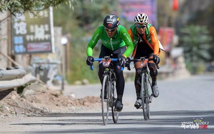 第四赛段的比赛一开始,我们便能看到两个熟悉的身影突出重围——戴珞和李祥。原来,在比赛出发前,想要“搞事”的戴珞便鼓动李祥一起打破前几日的僵局。前20公里上坡,两人便开始相互配合甩开大集团。80公里的下坡路段,戴珞利用自己的下坡技术优势,领着身后的李祥全力突围。途径金沙江大桥,来到海拔仅有2592米的日荣峡谷,戴珞继续配合着李祥的节奏,力求甩开身后正紧紧追击的吐尔松江和扎顿。