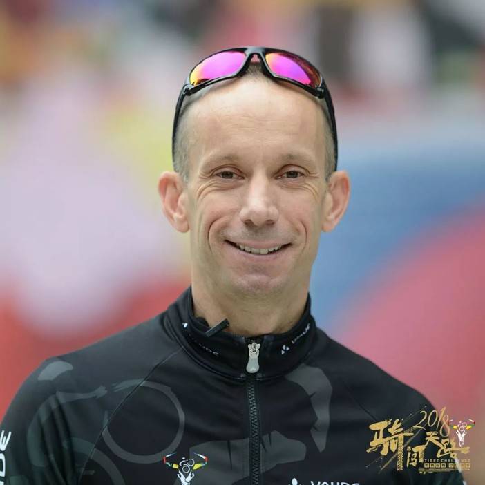 Mistral Yves,来自法国,今年41岁,2018骑闯天路黑龙江站冠军,骑闯天路川藏赛首位外籍车手,曾是法国青少年自行车队车手。