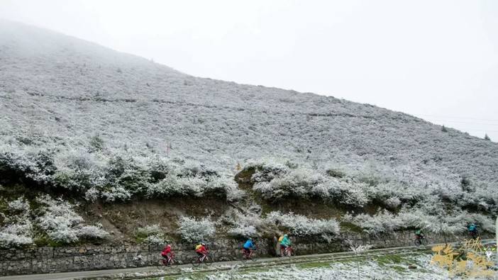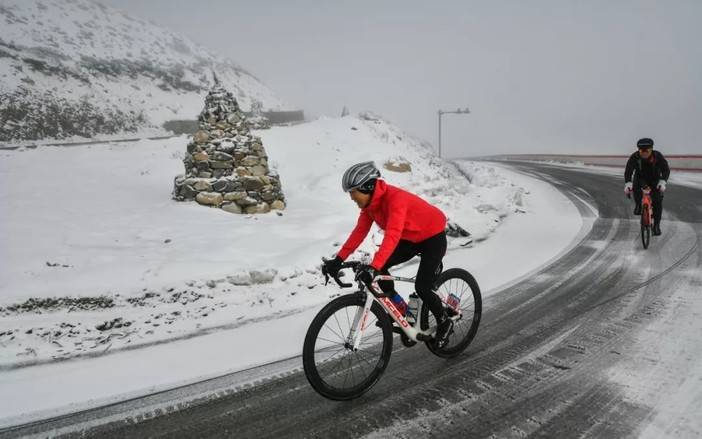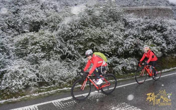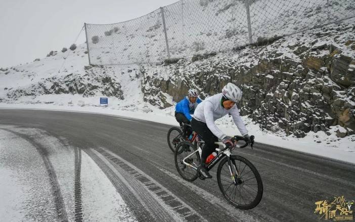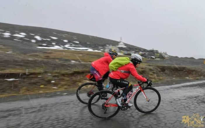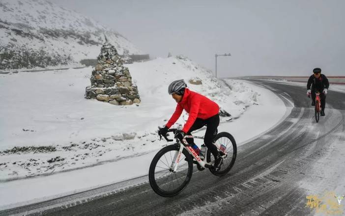 闯爷闯妹们无惧风雪,顶着恶劣的天气攀爬折多山,一路上的鹅毛大雪无法阻挡车手前进的脚步。