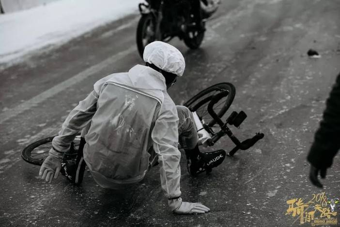 翻过了大雪纷飞的折多山,前方迎来了无比舒适的天气,艳阳高照下的318国道让人瞬间恢复了力气。然而在冰面一路畅通的泰山瑞豹队员梁世重却在平路遭遇重创。