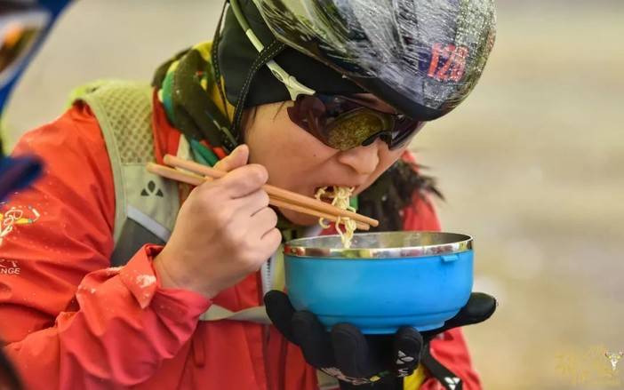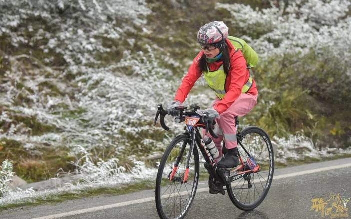 今天叶锦瑛比较保守,以缓慢的节奏骑上折多山,到达第一补给点时已经耗时2个多小时。后面面对高尔寺山的“鲁贝赛段”时,她担心爆胎和摔车,也是以求稳为主,没有过于激进的行为。