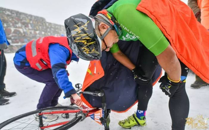 在寒冷、高海拔等恶劣条件下,KAILAS车队程良琼无奈选择登上了收容车,他是来自广东惠州的爬坡小王子,可来到了高原却有点力不从心,希望他今后几个赛段调整状态,发挥出自己应有的实力。