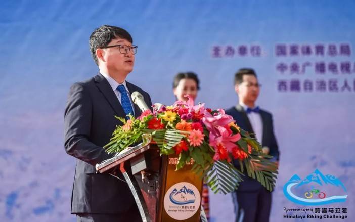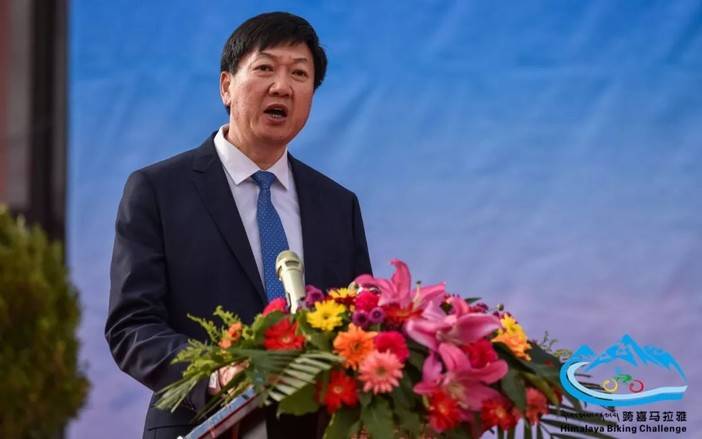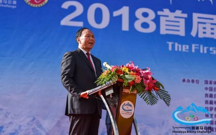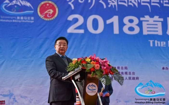 ▲区党委副书记、自治区主席齐扎拉宣布2018首届跨喜马拉雅自行车极限赛开幕