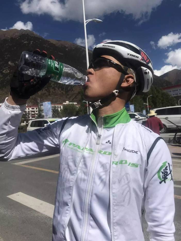 ▲精疲力尽的李祥一瓶怡宝水一饮而尽