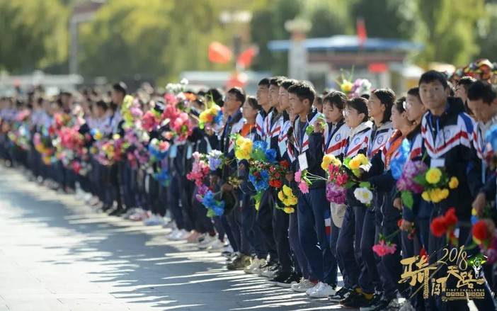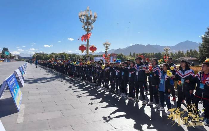神仙能够站在布达拉宫前享受热情的藏族中小学生为选手加油助威。