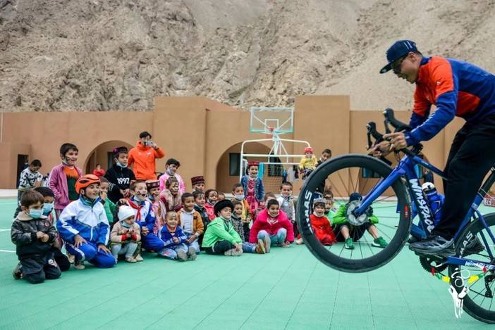 夜晚,骑闯天路的闯爷闯妹们还与当地的小学开展了一场自行车知识交流会