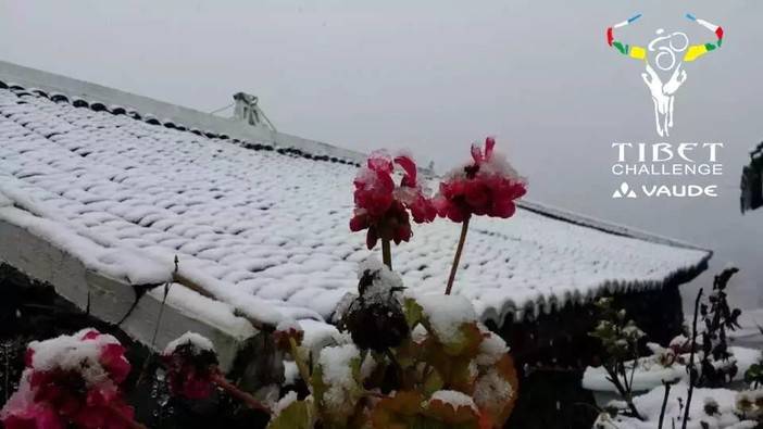 大雪给“骑闯天路”的选手带来巨大的困难,但在一位藏民的屋檐下,我看见的花让我想起一句藏族谚语:“看见了格桑花就看到了希望”!