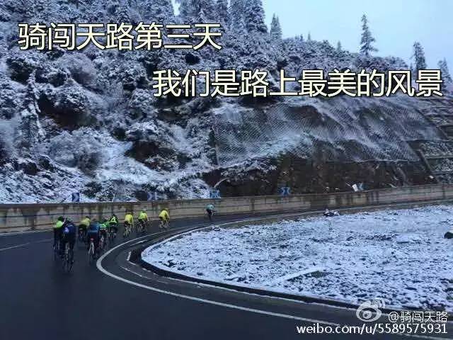 10月12日,骑闯天路赛事进入第三天,但真正的魔鬼赛程才刚刚开始。今天要骑行200公里,关门时间14个小时。天才刚刚亮,车手们已经蓄势待发,早上七点,骑闯天路又再出发。