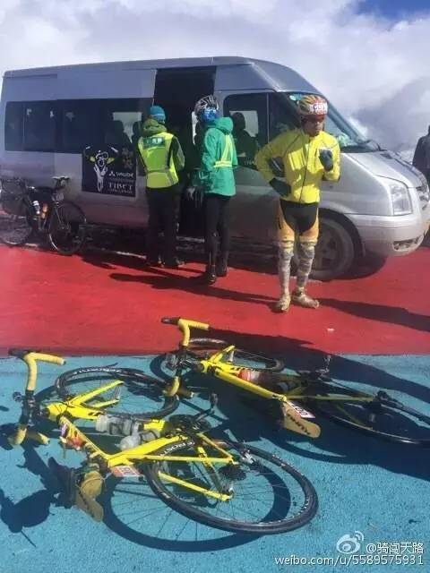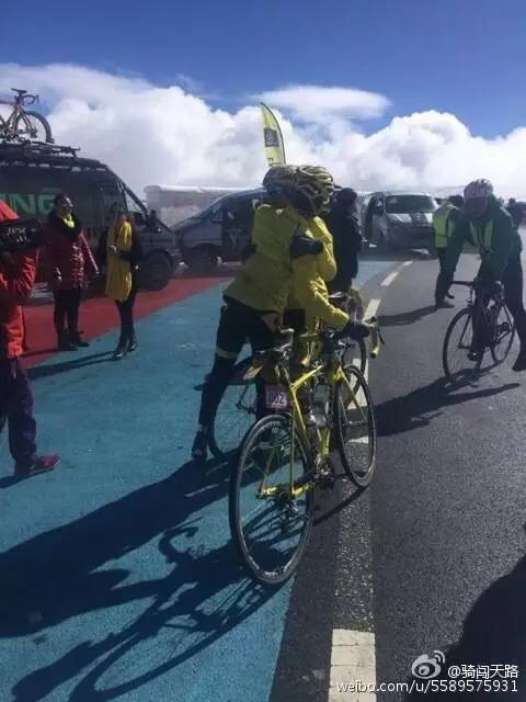 今天的第一补给点设在卡子拉山,4426米,领先的戴珞下车后先整理刹车,说是有点问题,对于今天的领先,他表示毫不意外,顺自己本来就具备这样的实力和状态,前两天是受路况和救人事件影响,今天才调回正常的频率。