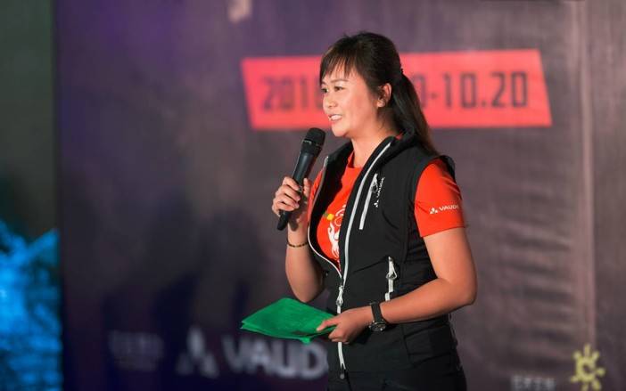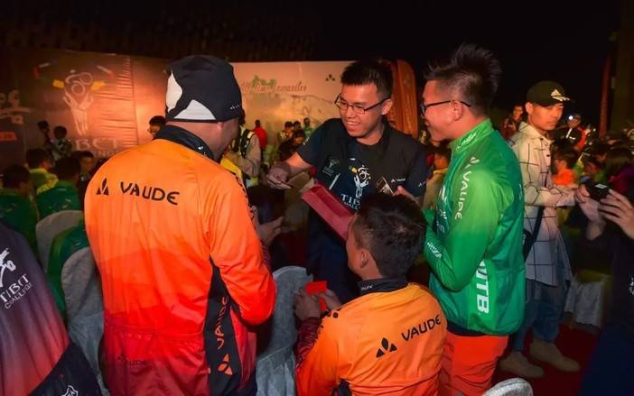 冠名赞助商VAUDE媒介经理邱奋为预祝车手成功完赛,倡议车手坚守环保使命!