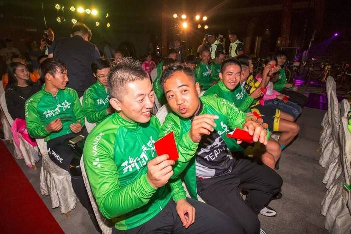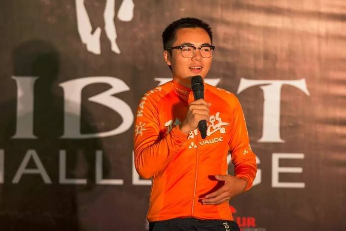 2015骑闯天路总冠军刘星宇穿着橙色领骑衫到现场为车手送骑行锦囊送祝福,他说参加骑闯天路会后悔10天,不参加骑闯天路会后悔一辈子。