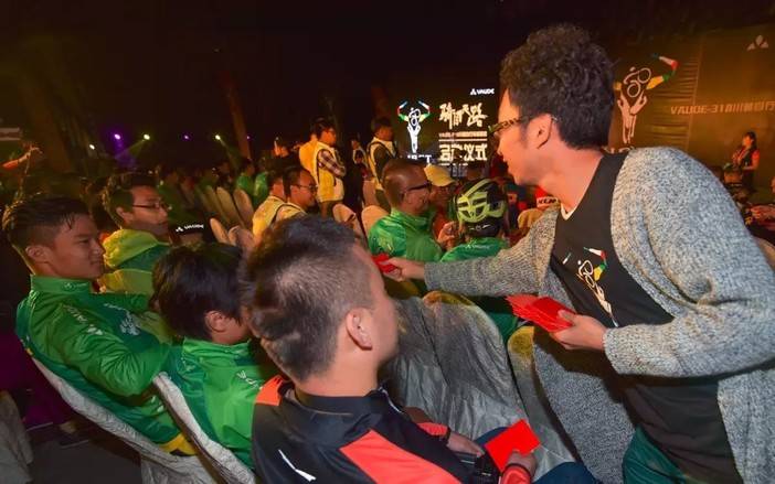 组委会发红包,祝福比赛平安顺利,车手抢到红包心情不错!
