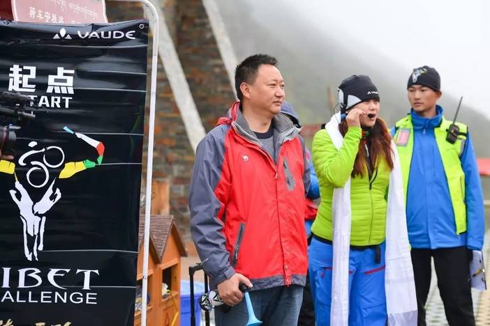 康定市旅游局局长段志强为每一位参赛车手送上了最新出版的《康定旅游新方向》,并为比赛鸣笛发车。