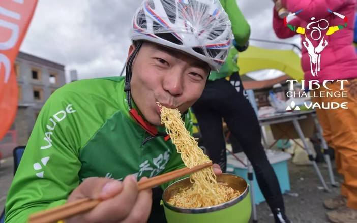 TC087号选手董其成到达比赛的第二补给点时更是直接坐下吃了泡面,是本届赛事名副其实的“泡面哥“。