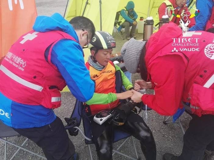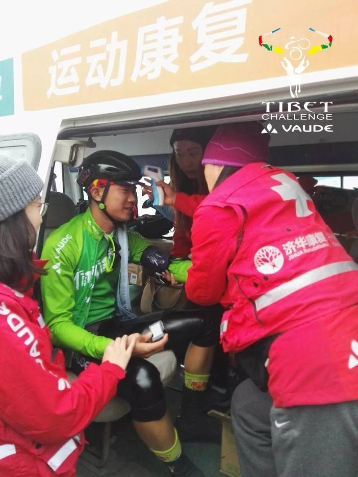 值得一提的是TC062金岩,在即将抵达第二补给点时,途径小村庄一辆摩托车飞速驶来,速度过快金岩只能侧翻,导致摔伤!好在伤势不重,金岩继续奋战毫不懈怠,始终处于第一集团,在负伤情况下勇夺第四,勇气可嘉!经过医生处理后伤口已无大碍,金岩表示对第二日比赛充满信心!