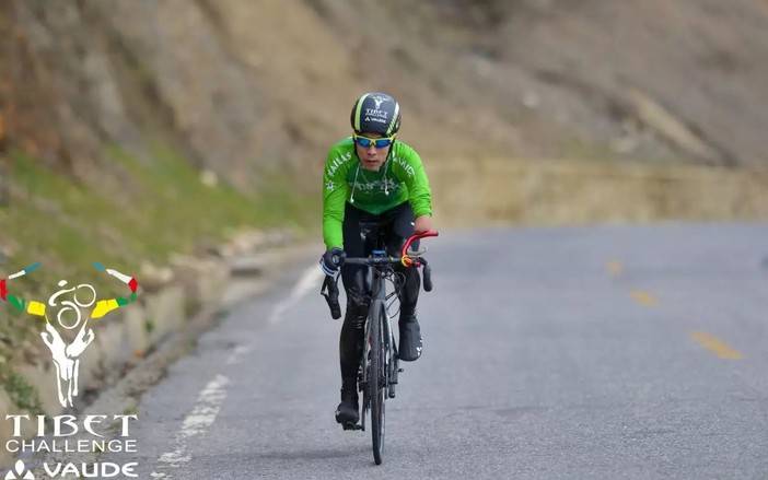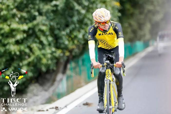 KAILAS车队车手TC066浦戈文自信而愉快的骑行,举起手来努力冲刺!