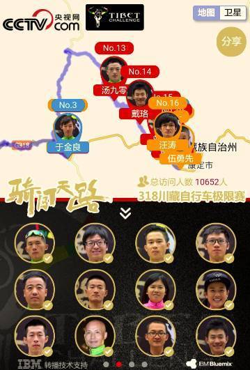 央视网在骑闯天路的高原上开启数据直播的新时代。直播从第一比赛日开始持续覆盖十天全部赛程。相对于我们熟悉的体育“直播”概念而言,这可能是具有改变传媒史意义的一次测试。在体育赛事的大数据、云计算处理领域处于绝对领先地位的IBM,动用了庞大团队为这次直播测试提供了技术支持。通过观看数据直播,可以了解高原骑行时车手的主要数据和赛事的难度指标,例如即时的海拔、经纬度、速度、坡度、温度、心率、踏频等等。