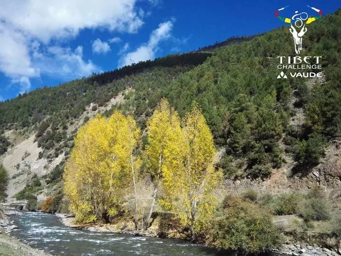 登顶高尔寺之后,便是53公里的峡谷长下坡,其间村落、流水、红叶,煞是美丽。