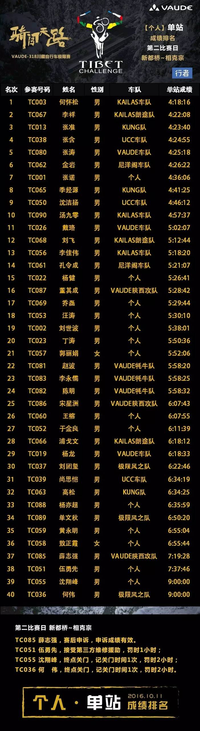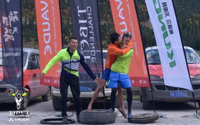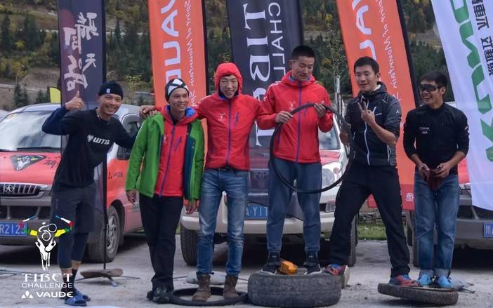 经历了越野赛般的赛道和不断的上下坡竞争,第二日比赛前三名脱颖而出!他们是KAILAS车队何怀松,KAILAS-朗途队李祥,KUNG队张准。爬坡小王子何怀松蝉联冠军,再次获得赛段冠军,两夺橙色领骑衫!VAUDE骑闯天路把环保理念贯彻到底,以轮胎作为颁奖台不仅创意十足,也紧紧契合了第二日赛程的爆胎主题!