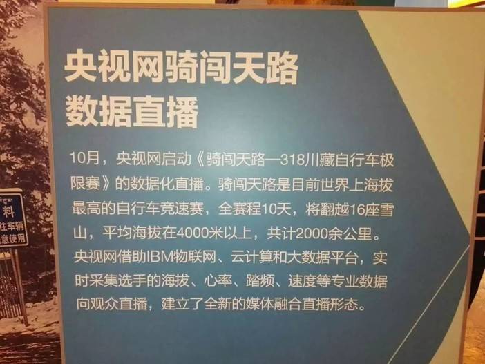 10月19日2016“IBM云计算峰会”在京召开,在本届骑闯天路VAUDE-318川藏自行车极限赛完赛日的同时,央视网也在大会上分享该项赛事转播的经验与成果。 体育媒体专家表示:相对于我们熟悉的体育“直播”概念而言,这可能是具有改变传媒史意义的一次测试。改变不但带给了围观者,也带给了比赛本身。
