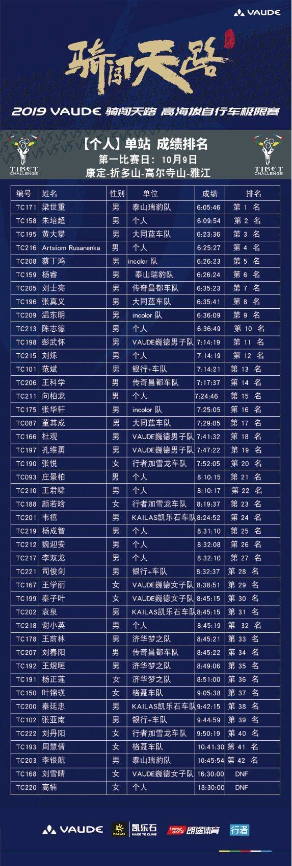在之后的比赛中,尽管身后的车手相互配合追赶,但始终没有超越他。最终,梁世重单飞夺冠,赢得了开门红。同时由于他在折多山和高尔寺山的爬坡中都是第一个通过,因此也获得了最多的爬坡积分,收获爬坡王,并且暂列总成绩第一。