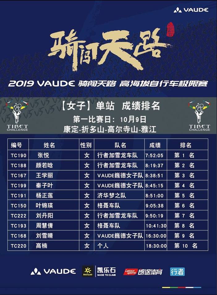 高尔寺山上山、下山路况较差,给各位闯爷闯妹造成了不少困难,今日不少车手都在格尔寺山经历了爆胎。VAUDE巍德女子队刘雪晴在折多山垭口被收容,不过她对此表示庆幸。“看着大家爆胎的惨烈状况,觉得自己选择被收容是明智的。”