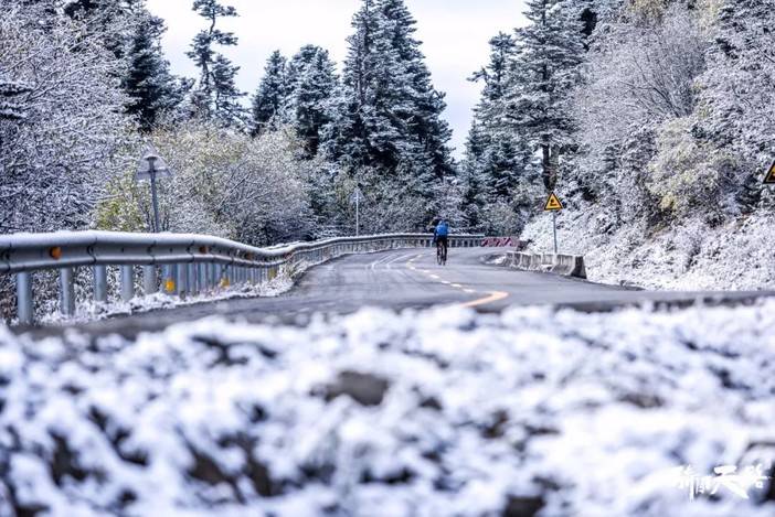 同时向柏龙具有较强的爬坡能力,他在色季拉山的爬坡中很快就建立了较大的领先优势。今天鲁朗迎来降雪,整个山头银装素裹,都被染成白色,这也是今年骑闯赛事遇到的最大的一场雪。
