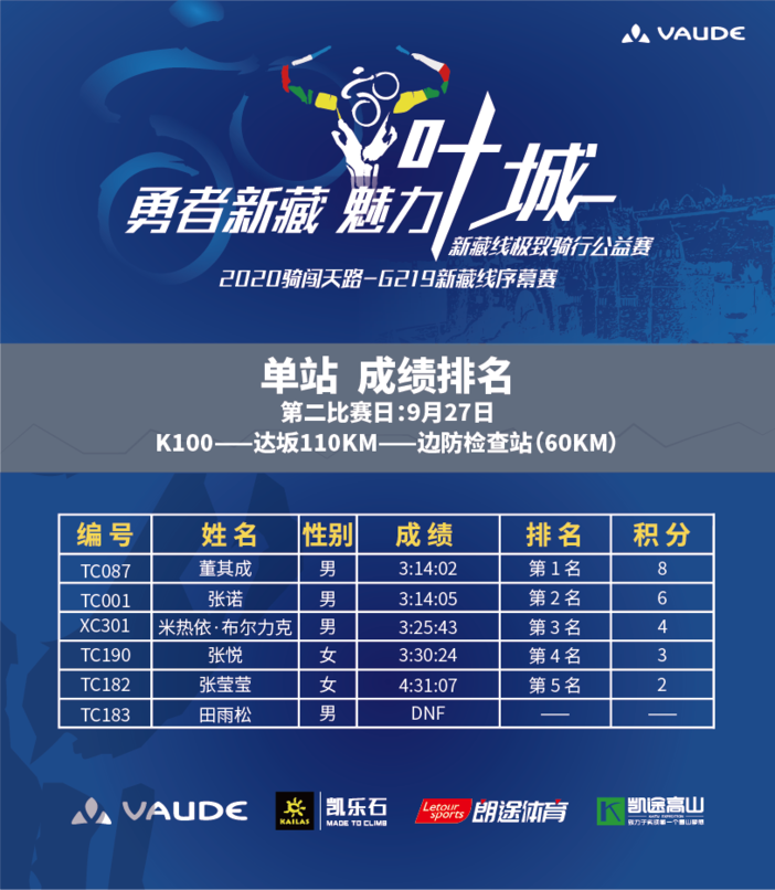 2020骑闯天路新藏赛序幕赛成绩