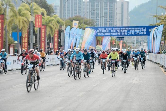 11月26日,“绿博黔南·康养之州”2023中国·黔南体育旅游欢乐季系列赛(冬篇)之第三届贵州·黔南“阳光罗甸”环玉湖自行车赛暨2023骑闯天路贵州·黔南(罗甸)红水河站在罗甸县玉湖公园鸣枪开赛,近600名自行车爱好者在罗甸玉湖畔激情追逐,同观众们一同领略了玉湖公园这座国家级湿地公园的自然风光,感受“山水湖城”的独特魅力。男子公路精英组冠军由陈俊铭获得,均速达到了42km/h,可见赛事的精彩程度。