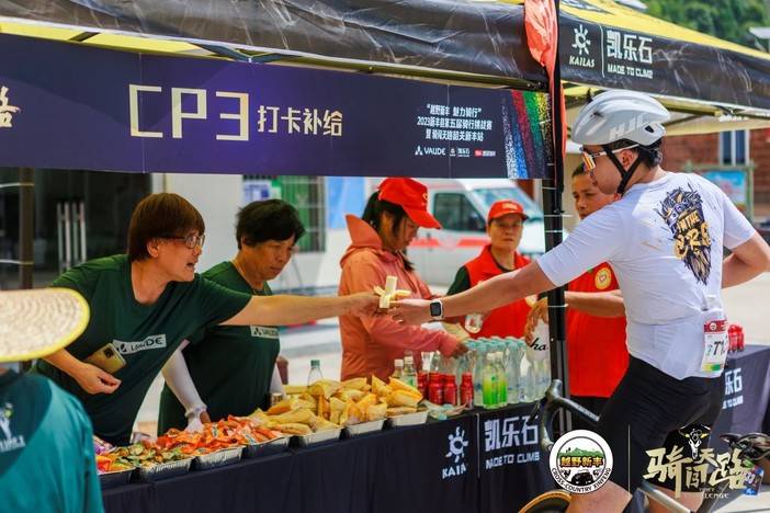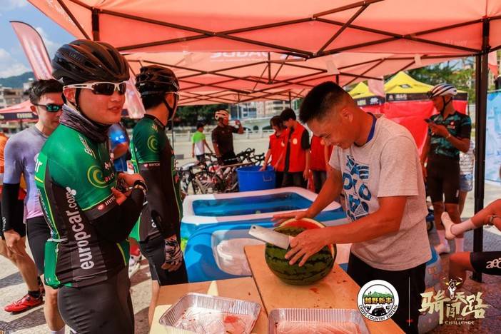 补给点上,“闯爷”“闯妹”享受着组委会为大家准备的丰富食物和能量补给饮料,累了就坐下来和朋友畅谈,愉快地分享着一路上看到的美景,同时也叙述着自己如何与自己较量,克服一次次想要放弃的念头。在短暂的休整之后,朋友间拍拍肩膀,为彼此鼓劲,又继续自己的“骑闯”之路。