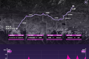 2.1.3 在第一赛段(拉萨-恰央措)、第四赛段(白坝-珠峰大本营)将设置1个爬坡点,前10名通过的车手将依次获得10、9、8、7、6、5、4、3、2、1的爬坡积分,爬坡积分累积最高者即为爬坡王。